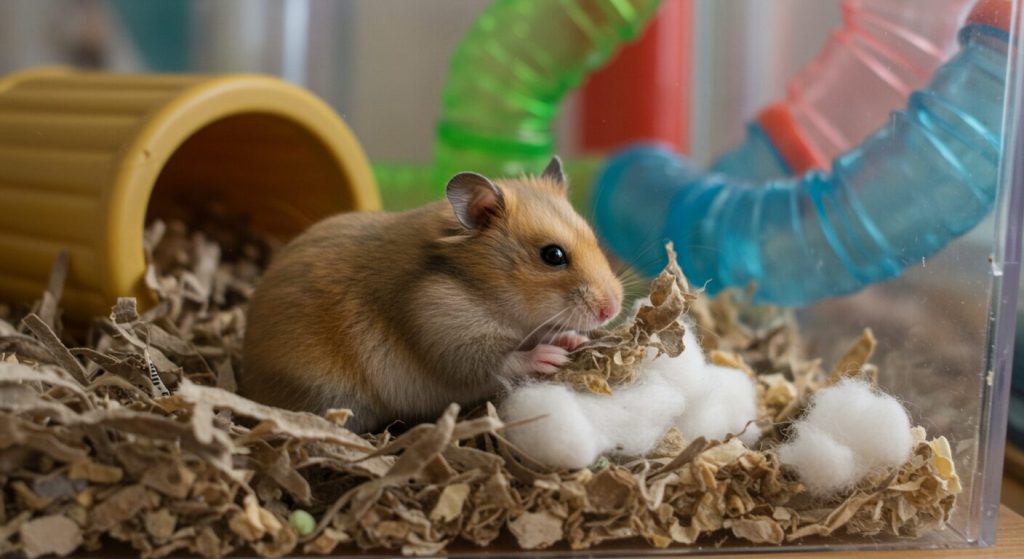 ハムスターが落ち着いて過ごせるように、静かで薄暗い場所にケージを設置しましょう。 - 巣材: