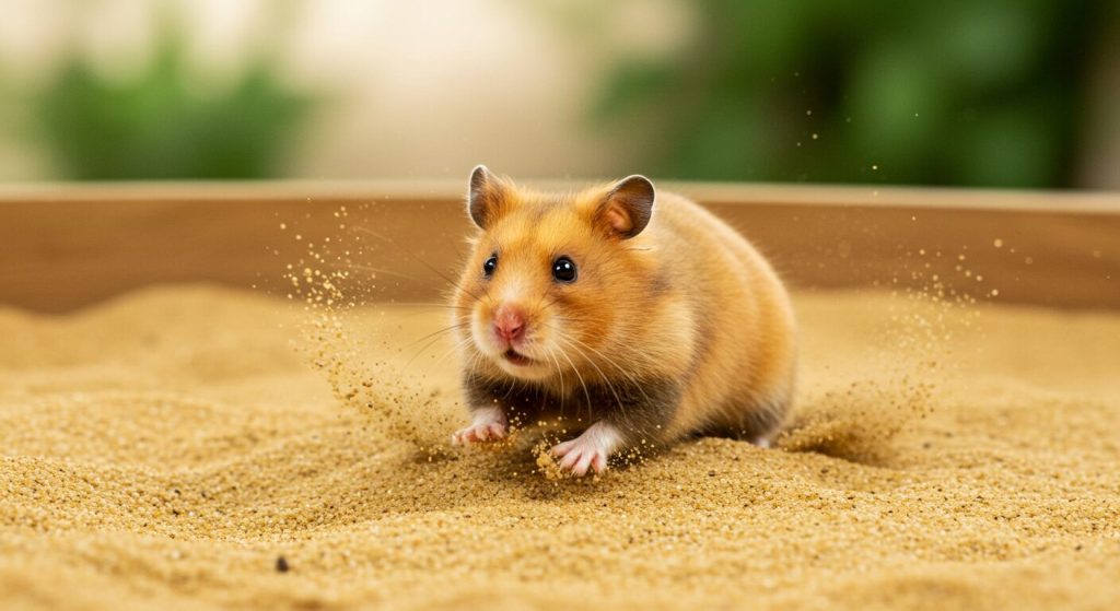 実は、ハムスターにとって砂浴びは、とっても自然で大切な行動なんです。彼らは、砂の上で体をゴロゴロさせることで、毛についた汚れや余分な油分を落としているんですよ 。 人間がお風呂に入るのと同じように、ハムスターも砂浴びをすることで、体を清潔に保っているんですね。