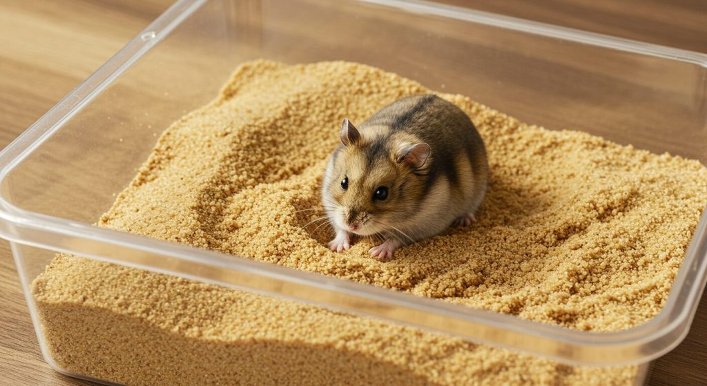 • 必ず、ハムスター専用の砂か、チンチラ用の砂など、安全なものを使用してください。