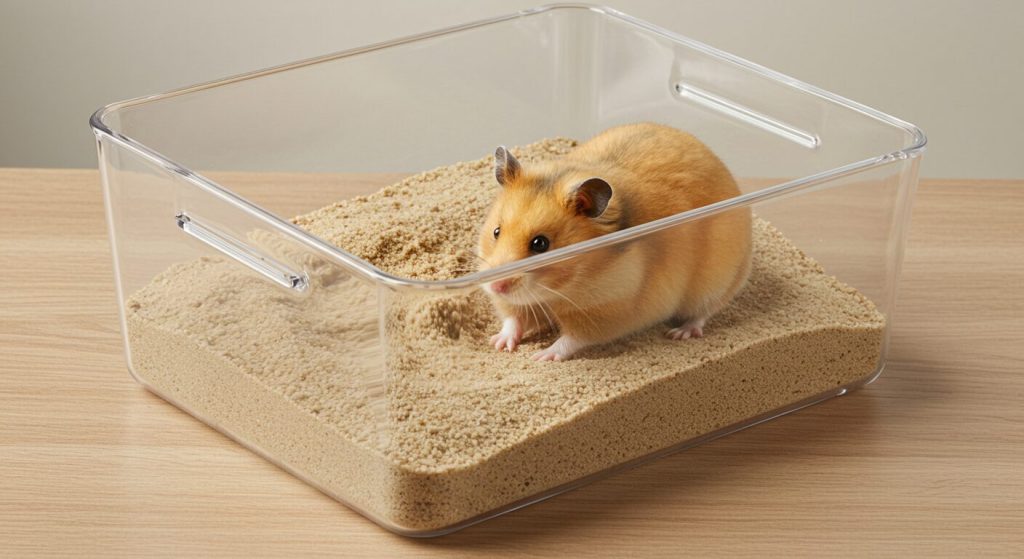 容器を設置する場所も、ハムスターが安心して砂浴びできるかどうかに関わってきます。