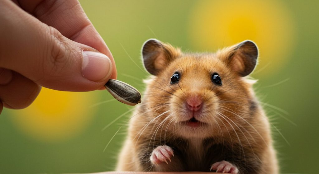 - ハムスターの大好きなおやつを手から与えることは、信頼関係を築くための第一歩です。