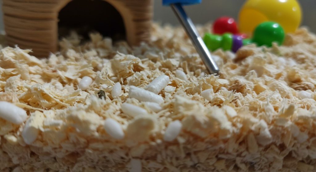 朝起きてハムスターのケージを覗いたら、なんだか米粒みたいな白いものが落ちてる…!